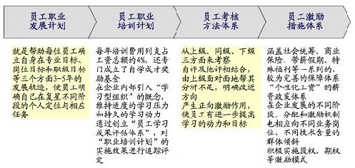 另外,为了尽快构建复星的人才资源高地,复星制定并实施了以职业发展、职业培训、职业福利为重要内容的全方位的“人才培养计划”。其中最重要的就是一项员工梯队建设计划,也就是关键岗位的接班人培训计划。在这套计划中,每个关键岗位,他们都会选择1到3位继任者,并通过各部门轮岗或外派方式,对他们进行培训和锻炼。此外,他们还会帮助每位员工规划3~5年的发展轨迹,使员工明确不同阶段的个人定位与相应任务。复星每年还拿出约占工资总额4%的培训费用,专门成立了自学成才奖励基金。在薪资方面,复星实行了“个性化工资”的薪资政策体系,让每一位员工都可以有机会扩大自身的价值贡献度。还积极探索股权、期权等激励模式,以充分调动员工的积极性,提高员工的满意度和成就意识。