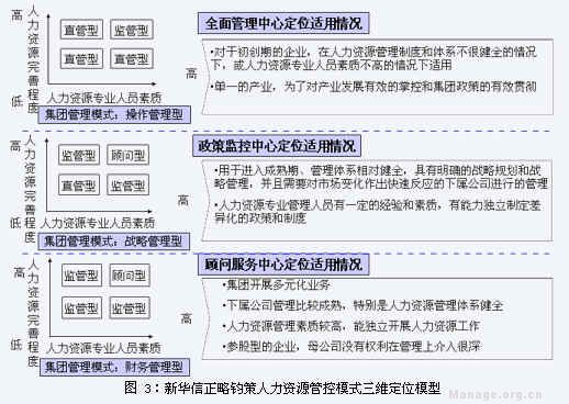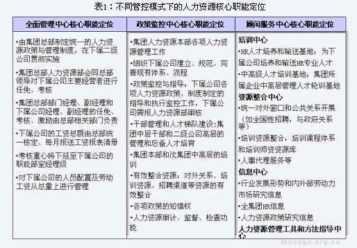 3.采用不同的管理模式,还需要考虑下属企业现有人力资源管理水平,在人力资源基础架构还未建立起来的情况下,适合采取全面管理中心定位;
