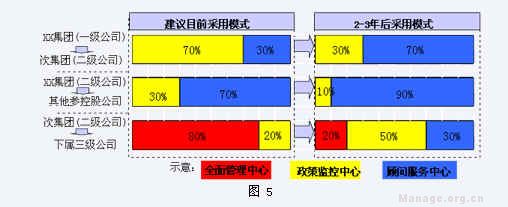集团总部在有效整合集团范围内人力资源、完善自身流程体系、提高人力资源队伍素质的基础上,逐步由以政策监控中心为主的功能定位,强化顾问服务功能,最后过渡到顾问服务中心功能;