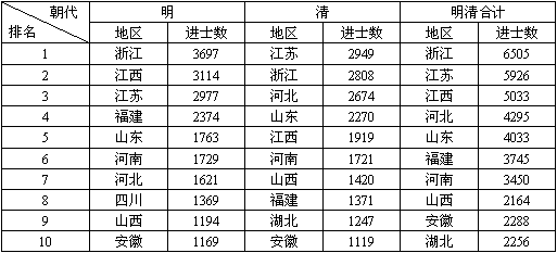 (注:本表根据沈登苗.明清全国进士与人才时空分布及其相互关系[J],中国文化研究,1999(4):59-67整理所得)