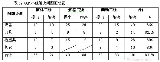 QQM小组在实际工作中,发挥了巨大作用。1997年5月二厂三条机加工线投产后,QQM小组在工艺及设备规划方面、ISO9000和ISO14000体系审核过程中及日常生产过程中发现和解决了许多问题,有效地提高了工作质量和生产质量。