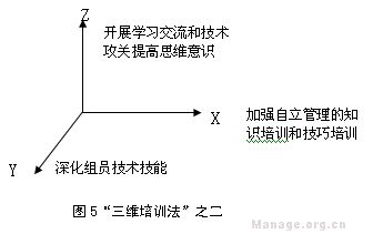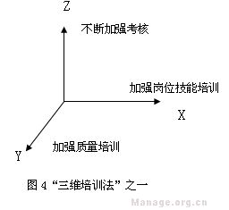 ㈢培训。班组的成员以前大多未接触过管理,缺乏自我管理和班组管理意识,素质有待提高,长期受旧式管理的影响也使得他们缺乏自律,工作责任感不强。为此,B班提出“全员管理,培训不止”的口号。他们使用了“XYZ”坐标的三维培训法(见图4与5)。