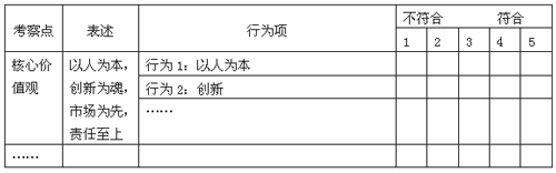 企业核心价值观是企业成员共同的价值追求、价值评价标准和所崇尚的精神。企业核心价值观是降低企业沟通成本,保持员工向心力的内在驱动力。因此,对核心价值观的考察也非常重要。