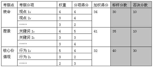 面试官可以根据应聘者与公司基本观点的符合程度进行评估打分: