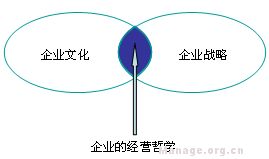企业文化与企业战略看似两个泾渭分明的概念,但其间却有着十分密切的联系。哈佛商学院曾经就企业文化和企业战略方面的问题调查多名企业界人士,但同一个问题在一部分人士看来是属于企业文化范畴,在另一部分人士看来却是属于企业战略范畴,由此分析得出,两者之间并没有明确的界限,并且存在着一个交集,这个交集就是企业的经营哲学,它既属于企业文化,又属于企业战略(如图一)。