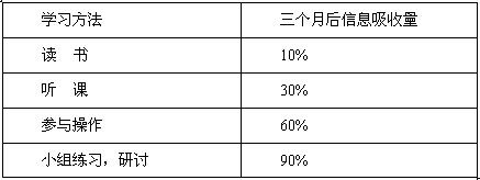 以下是成年人采取不同的学习方法后,在三个月后的不同效果: