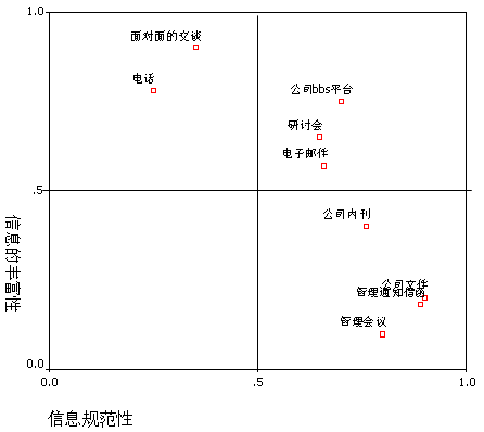 下面的矩阵反映了不同的传播与沟通渠道在传递信息符号的丰富性与规范性上的组合效果。