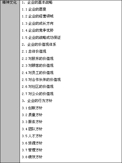 精神文化是企业文化的核心,它是企业在经营过程中,受一定的社会文化背景、意识形态影响而长期形成的一种精神成果和文化观念。精神文化包括: