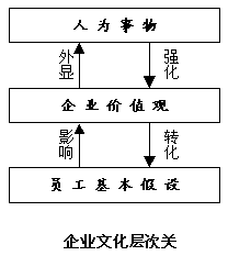 美国学者埃德加·沙因将企业文化划分为三个层次:第一层是外显的人为事物,第二层是表层的价值观,第三层是核心的基本假设。通过这个理论模型可以发现,企业文化的本质因素是存在于员工内心深处的基本假设,是基本假设决定了企业员工的行为。而目前公认的企业文化三层次中的理念层(以价值观为中心),则是企业文化本质的表现形式。企业文化作为一种管理思想是要预防企业在运行中面临的问题,弱化或消除企业运行中的障碍,减小管理中的不可预知性,也就是要最大可能地预测组织或个体行为以及行为所导致的最终结果。因此说,企业文化的核心是影响产生个体和组织行为的内在因素,即隐藏在个体和组织中的基本假设。