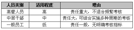 综合分析,年终考核对员工的适合程度是不一样的,可以用下表来说明: