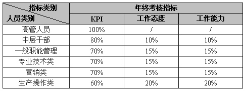 因此,笔者建议,年终考核一定要设置明确的指标,无论是相对客观的定量指标,还是主观性强一些的定性指标,有总比没有强。即使是诸如团队协作能力、合作意识、工作积极性、创新精神等等指标也能够对员工的某些方面做一个评判,总比纯粹的拍脑袋强。设置指标也是企业绩效考核向科学性、规范化发展的一个表征。因而,用一叠叠考核表来实施年终考核在某种程度上也是必要的。结合上一个问题,建议为各类人员设置不同的指标类别并赋予相应的权重。