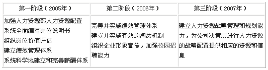 为保证人力资源战略得以顺利贯彻,项目团队设计了三个阶段的工作步骤,参见表1。