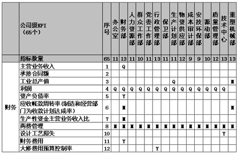 表2:绩效指标部门相关性判别表(部分)