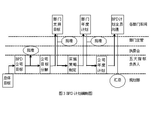 上汽五菱绩效考核体系的最大特色在于BPD,既是战略的执行工具,又是企业绩效考核工具,将企业的战略层层分解,落实在每一个岗位,成为绩效考核标准。BPD计划的制定见图3。