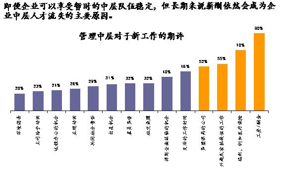 目前中层经理的工作满意度普遍偏低,薪酬因素将成为企业中层流失的主要原因。