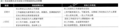 像上面这样的情形在典型的招聘过程中随处可见:企业为了吸引到优秀的人才,通常会极力给应聘者承诺一些无法实现的诺言,或者向其描绘一幅美好生动的未来图景,而对于与职位和公司有关的消极面则避而不谈,如频繁的出差与加班、较少的晋升空间、较低的工作保障等。当员工进入企业工作一段时间后,发现自己所期望的与实际存在的相差很大时,必然会经历心理上的落差感和失落感,一部分员工就可能会选择离开。