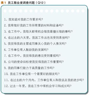 组织管控模式的成功变更请求企业具备较高的整体管理程度,而各个部门的组织气氛和一线管理者的领导能力则往往成为企业管理的“短板”。一线经理的管理方法和沟通方法,对于员工的绩效产出具有非常大的影响。对此,万通人力资源部试图借助盖洛普的“员工敬业度调查”(Q12,见表1),一方面与员工加强沟通,改良组织气氛,另一方面诊断管理问题,提升一线管理者的领导力。