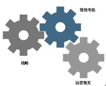 事实上,我们需要的绩效考核体系既要关注企业战略,又要关注企业的运营现实,它应当是有效连接战略与现实的“中间齿轮”(如下图),跟任何一个齿轮的脱节都不是一个成功的考核体系。