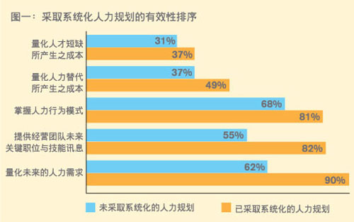 其实,从此次亚洲所进行的调查结果与笔者过去辅导亚洲企业的经验来看,人力规划这个议题的确是多数企业所关心的,但是多覂重于人才技能盘点或人数预估。且人力资源单位的角色多为年度数据搜集、汇整与分析,因此人力规划通常一年只会发生一次,就是于年度编列预算时提出,很少与营运规划或年度战略挂勾。但是,战略性人力规划是通过经营战略与产业分析,有效掌握人才短缺及异动风险并兼顾成本效益,成功拟定未来人才需求战略与人力投资计划,以确保组织提前准备未来发展所需的足够人才与关键技能。换言之,已经由单纯的年度人力预估或凭直觉预估人数,转变成为连结中长期经营战略的人力规划,重视量化分析及与营运需求,以确保战略目标的达成。