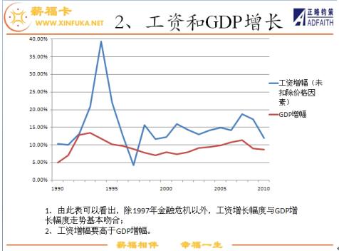 2、工资上涨的幅度超过了GDP和CPI的增幅;