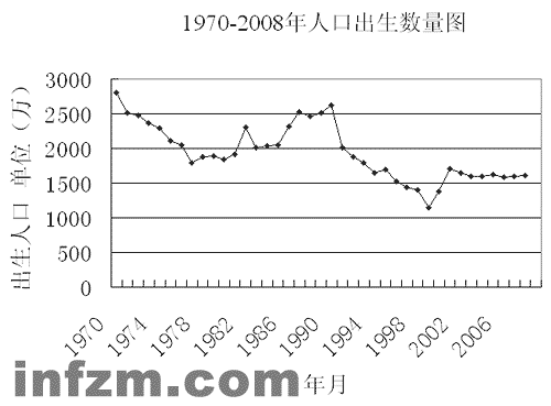1970-2008年人口出生数量图数据来源:中国统计年鉴制图:梅岭
