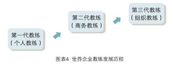 沈军:从2010年开始,我将会把更多的精力投入到为中国企业提供高管教练与组织教练服务,这与世界企业教练的发展是一致的,属于第二代教练及第三代教练提供的教练服务,过去的一般教练更多是第一代教练的教练服务(见图表4)。