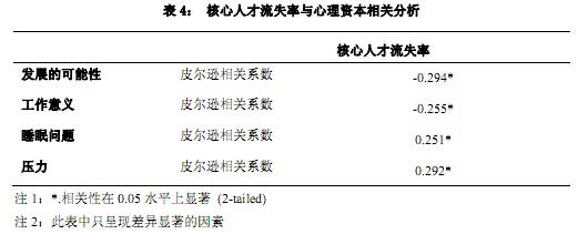 3) 核心人才流失率与心理资本具有相关性,表现为: