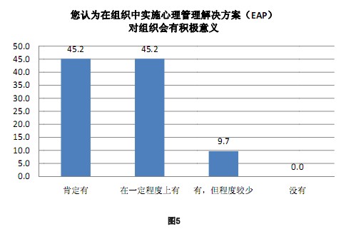 有90%的人认为在组织中实施心理管理解决方案(EAP)对组织在一定程度上或很大程