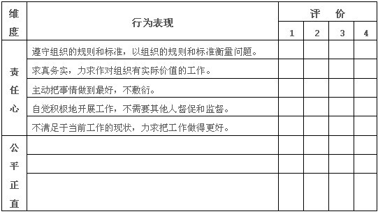 譬如,我们这样来确定责任心的评价等级: