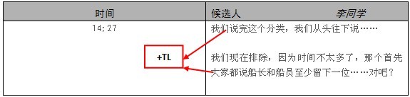 只有对胜任力熟悉,才能对行为指标进行准确、一致的归类。比如将“引导团队成员关注任务目标”的行为归类为“团队领导力(Team Leadership,TL)”,“+”表明被评价者的这一行为表现反映了团队领导力。否则会导致错误的归类,这样就会高估某一胜任力,而低估另外的胜任力。