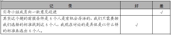 只有对胜任力熟悉,才能观察和记录到能够反映胜任力的特定行为表现,收集的行为证据应该为成员在小组活动中的真实表现,即说了什么,做了什么,而不是对成员表现的评价或判断。这一阶段只收集被评价者的第一手行为证据资料,避免提前做出判断。举例如下: