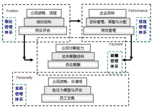 以上这些薪酬问题,不能单纯依赖提高薪酬水平来解决。有效的解决办法是按照人力资源4P的模型来搭建人力资源管理框架: