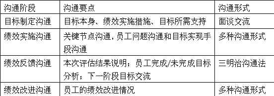 绩效改进沟通常常不会单独进行,它与绩效实施沟通相互穿插,并贯穿于目标完成的全过程。在绩效实施沟通中,既对本阶段目标执行情况进行沟通,又会对上一阶段绩效改进情况进行沟通。这样员工绩效改进就更有利于目标的执行。