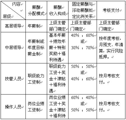 (二) 实行以岗位(职务)层级为界面的不同的薪酬分配模式