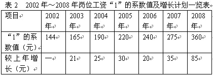 作为基本薪酬分配制度——“岗位系数工资制”的工资增长,重点体现在每年基准系数“1”的值的增长上。基准系数值的调整,采取了与企业月度、年度经济效益(或重点经济技术指标)挂钩考核的办法,实行浮动管理。