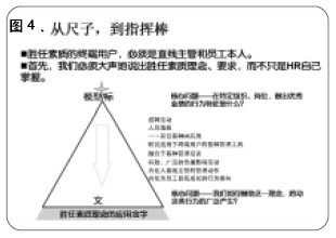 金字塔的顶端和底座分别有两个核心的问题:在顶端,什么是核心素质?定义是——在某个特定企业中,优秀岗位作出优秀业绩的行为;在文化层面,如何借助这个理念驱动这些行为在组织里广泛产生?回答了这两个问题,基本上就能知道如何把尺子变成指挥棒。