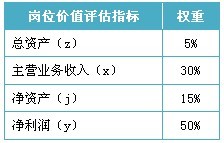 作为企业经营负责人,其负责企业的规模、效益和资产状况是最能够直接反映企业经营者岗位职责重要性、岗位经营管理难度的指标。不同的企业,均可以用这些指标来衡量,以体现其岗位的价值及对企业经营战略的贡献度。根据A集团公司经营的战略目标,其更强调了公司赢利能力和业务规模的发展,同时兼并顾资产质量,则确定下列企业经营者岗位价值评估指标及其权重: