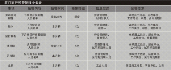 为了更方便的进行人力资源管理,商行还使用了K/3HR系统的人事管理预警功能。通过预警设置,人力资源部门可以提前知道劳动合同到期、即将退休、留行察看到期、试用期到期等人员名单,增强工作的预见性。