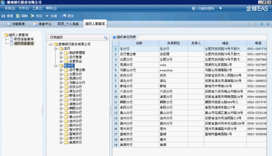 系统管理总行及下属14家分行、4家直属支行、160多家网点的全部行政机构,在“数据集中、分布式应用”的模式下,实现了规范统一、流程统一、平台统一,与徽商银行“一级法人,二级管理,三级营销的管理体系相匹配。