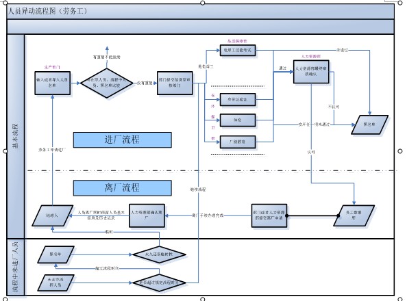 譬如,以往的三类员工入职流程节点多,各种控制条件繁锁,需由各用工部门提供纸质表单,业务量很大,流程比较繁琐,且过程难以控制。现在系统实现了三类员工入职流程管理,由用工部门通过批量导入的方式提供员工的基础信息到系统,将控制条件系统化,在系统中经过职能部门流程审批最后汇总到人力资源部,由人力资源部进行人员入职。同时实现了三类人员入职所需的各个审批表的打印功能,包括三类人员入职流转表、部门用工需求表、安环部门身份证验证人员表等。通过三类员工入职流程,简化了手工操作,加快了三类员工的入职处理,同时也增强了过程控制。