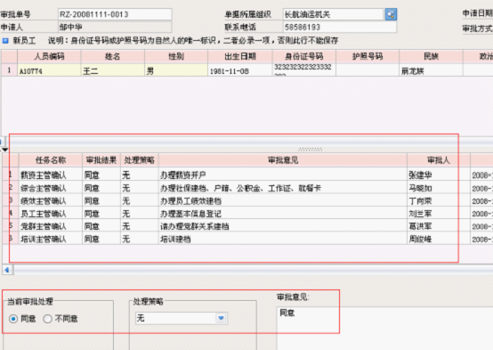 南京油运原有的人力资源审批流程业务模式是一个业务由发起人拿着审批表,到各个部门去签字审批,有时候领导去外地出差,流程就必须停下来,等领导审批。在合同管理中,也存在类似现象,员工的劳动合同到期后HR管理人员却不得而知,往往需要员工主动来提醒办理或HR管理人员定期人工检索核查到期合同,这种典型的“人”找“人”管理模式效率较低,难以满足现代企业高节奏运转的管理需求。