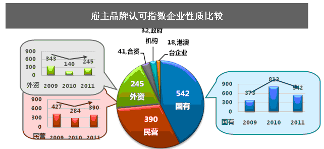 1. 后危机时代,外企、民企挑战国企最佳雇主领先地位,呈现三分天下之势。