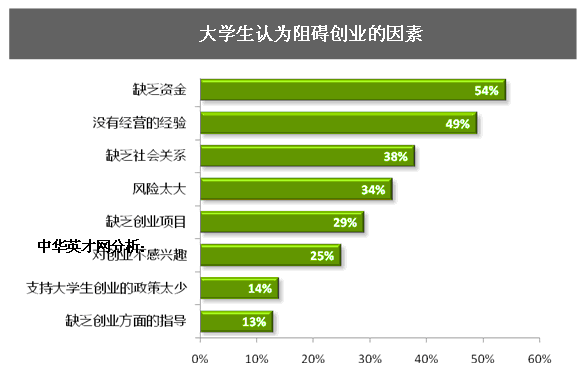 另外,中华英才网也发现目前国家制定的鼓励创业的计划可能并没有深入影响到在校的大学生,因此大学生在决定是否创业时更多还是从自身的资金和经验等情况出发。中华英才网认为,相关政策的继续完善和宣传可能是促进大学生创业的所需要采取的重要措施。