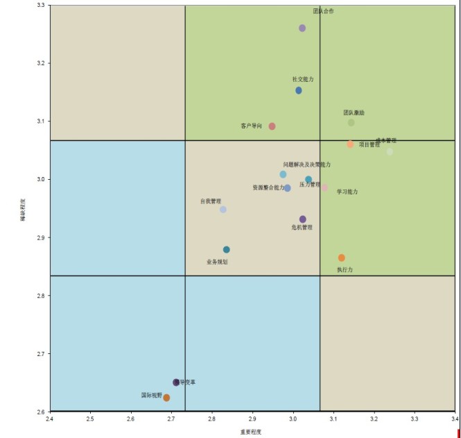 在调研中,我们将能力从重要性和稀缺性两个角度进行结合分析。