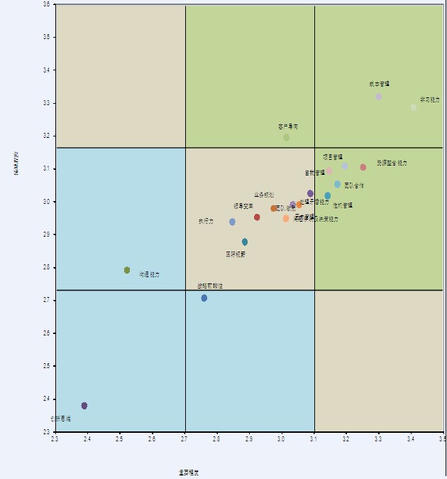 ◆ 高重要性与相对稀缺能力:“项目管理”、“成本管理”、“学习能力”、“执行力”是评价中非常重要的能力,但其稀缺性也相对较高。