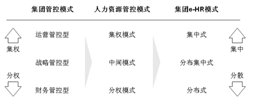如上图所示,集团e-HR主要存在三种基本模式: