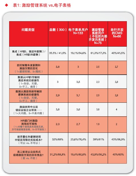 我们的发现 (如上面的表1) 表明,公司内部的CMS系统和专门的HRIS或ERP CMS系统比较,在功能和性能方面还是存在差距。在8个衡量因素的6个中,公司内部的解决方案达不到供应商所提供的水准。特别是,这些系统在HRIS、薪酬和激励集成方面有所欠缺。