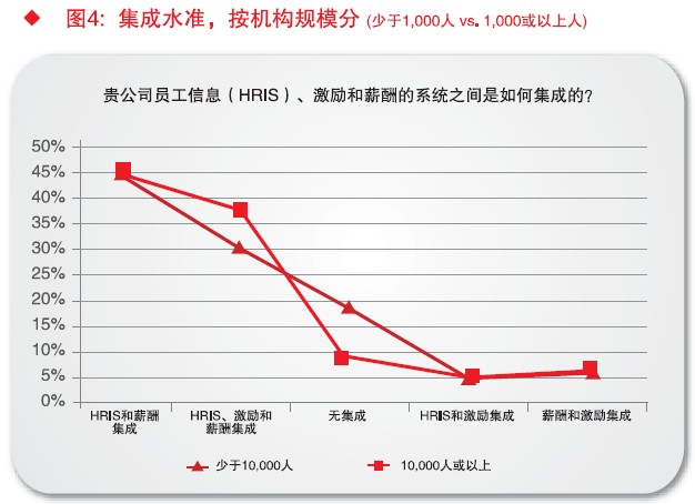 ※ 在大部分机构中,HRIS和薪酬系统是集成的,但是只有1/3的机构拥有整合的人力资源、薪酬和激励系统。