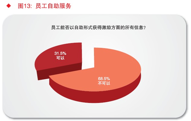 ※ 尽管员工自助服务是大势所趋,但接受调查的大部分机构(68%) 的员工都不能以自助服务方式获得激励的相关政策(有可能是公司不批准此类访问,或者其激励工具不允许访问)。