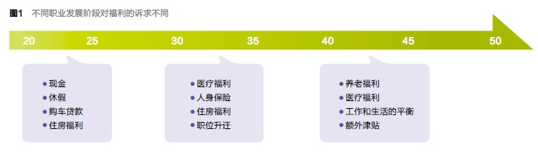 福利计划的特点在于员工在不同的年龄阶段和职业发展阶段对福利的诉求会发生很大变化(详见图1)。在传统的福利计划中,企业既为福利计划买单,同时也行使福利计划的决策权,员工作为福利的消费者却没有被赋予选择权。因此这种全员统一、标准化的福利计划安排,由于不能满足员工的个性化需求,直接导致了员工对福利计划的体验值与满意度不高。